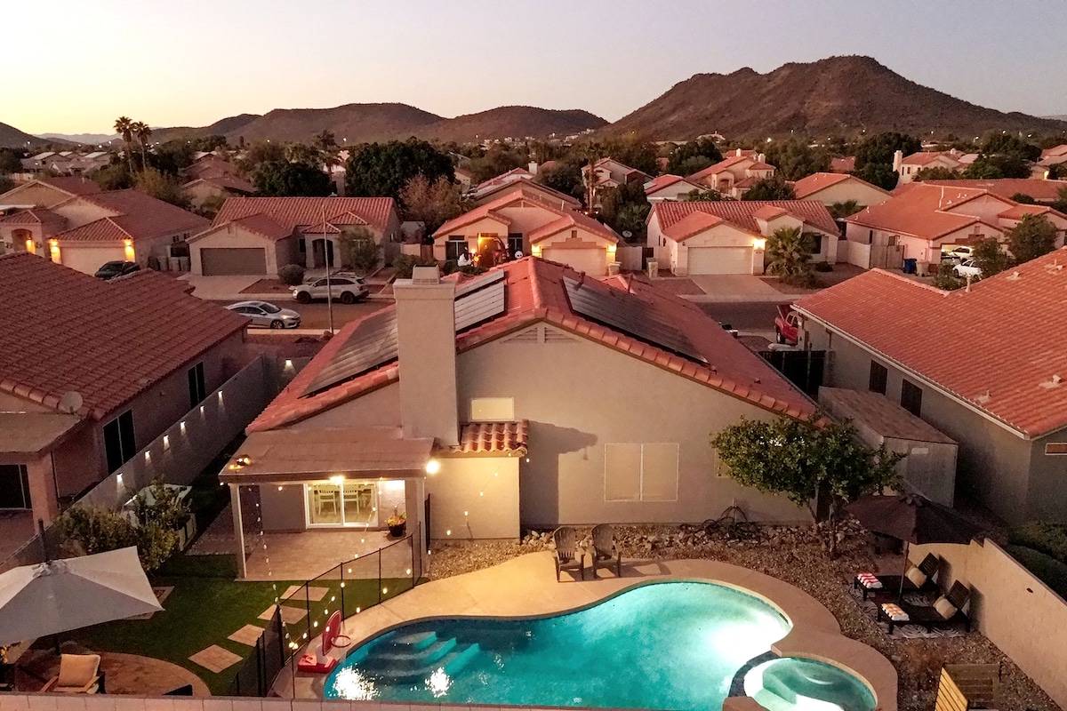 *DISCOUNTED RATES! Experience AZ in comfort! This beautifully renovated 4-bedroom home has everything you need for a relaxing getaway! With a sparkling heated pool, pool table, board games, and TVs in each bedroom, you will be endlessly entertained. Fully loaded amenities feel like home. Bring your family & friends! This cozy home and backyard are ready for AZ sunsets and great times! BOOK US NOW! **Heated pool available for a Daily Fee *Pool heating functions need to be requested for use.