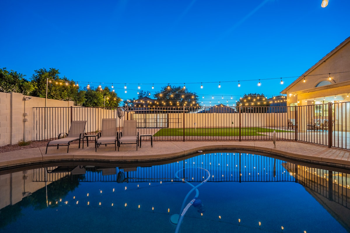**Please do not book if below age 26 **No parties/events **Only guests booked w/ primary guest in the home (unless otherwise approved by host) **Please answer the questions below: • What brings you to area? • Who's staying w/ you in the home? • How many minors (under 18) are in the reservation & their ages? No extra cost for heated pool Comfy home w/ many amenities Renovated BR's, heated pool, fully stocked kitchen Conveniently near Westgate & Peoria Sports Complex (outlets & restaurants).