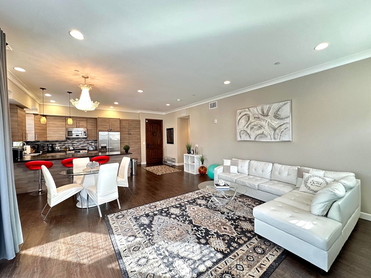 Luxury, Bright, Quiet and Stylish 3 BD 2 BR in DT Pasadena. This newly built condo, features a stunning full kitchen and beyond ample space to relax, focus and feel being at home. Parking, Self Check In, Elevator, Super Fast internet, AC, Washer Dryer and all essential amenities are provided to make your stay as comfortable as you desire.
