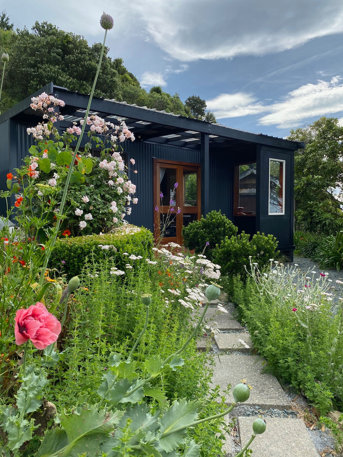 Relax in this very peaceful and private setting of this new Studio Apartment with the feeling of being in the Countryside. It is situated 6 km from Nelson CBD and close to bus service into town. There is one parking space available on our section, breakfast is included in your stay. The Garden Cottage Bedroom and Workspace is available on request when separate beds are required, please read full description below.