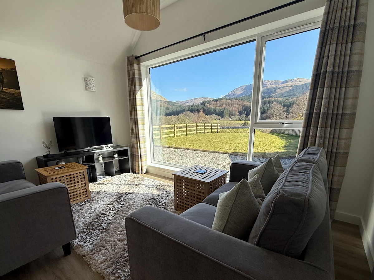 Take it easy at this unique and tranquil getaway. Enjoy this gorgeous setting either from the warmth and comfort of the open plan lounge or from your own private deck with extraordinary views over Dumgoyne and the Campsie Hills. You will be surrounded on all sides by fields, woods or mountains but yet be close enough to pop out for a coffee and cake at the local village or taste a wee dram at the Glengoyne whisky distillery.