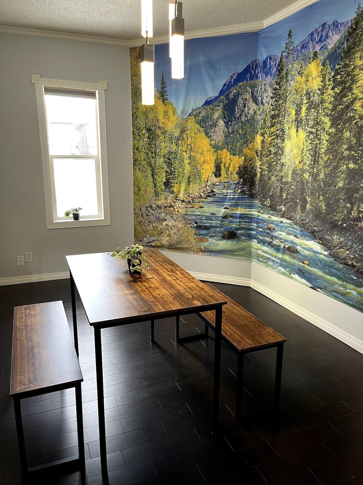 Be in the mountains in an hour! Walk out basement suite with private entry, plenty of street parking, in a quiet neighborhood 3 mins to shops & restaurants, perfect for couples, friends or family. AC for summer & in-floor heat in winter for total comfort. Well stocked kitchenette with convection toaster oven/air fryer & double induction burner with pots and frying pan. Plenty of seating in the living & dining room make this stylish place perfect for groups. Washer/dryer available upon request.