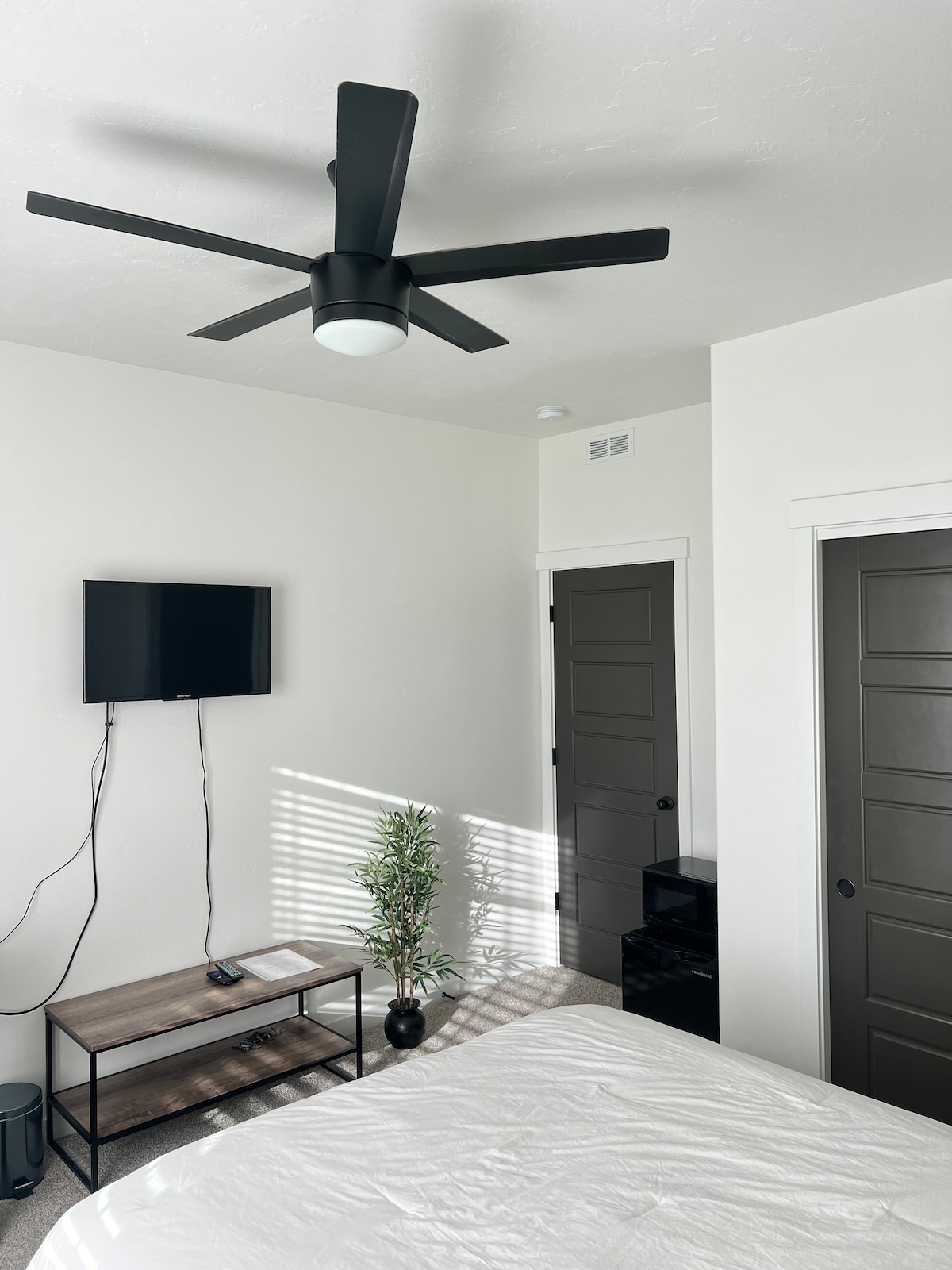 Welcome to the Riversong Retreat Cabin at the Hagerman RV Village! This stylish 214sf *cold water* only cabin can sleep up to 4 guests on a queen size bed or bunkbed with 24hr access to our spotless, private communal showers. Perfect for a small family or couple’s retreat. Stream your favorite movies on the smart TV or relax on the porch. The village also offers a newly remodeled clubhouse with pool table, foosball, dining tables and entertainment area.