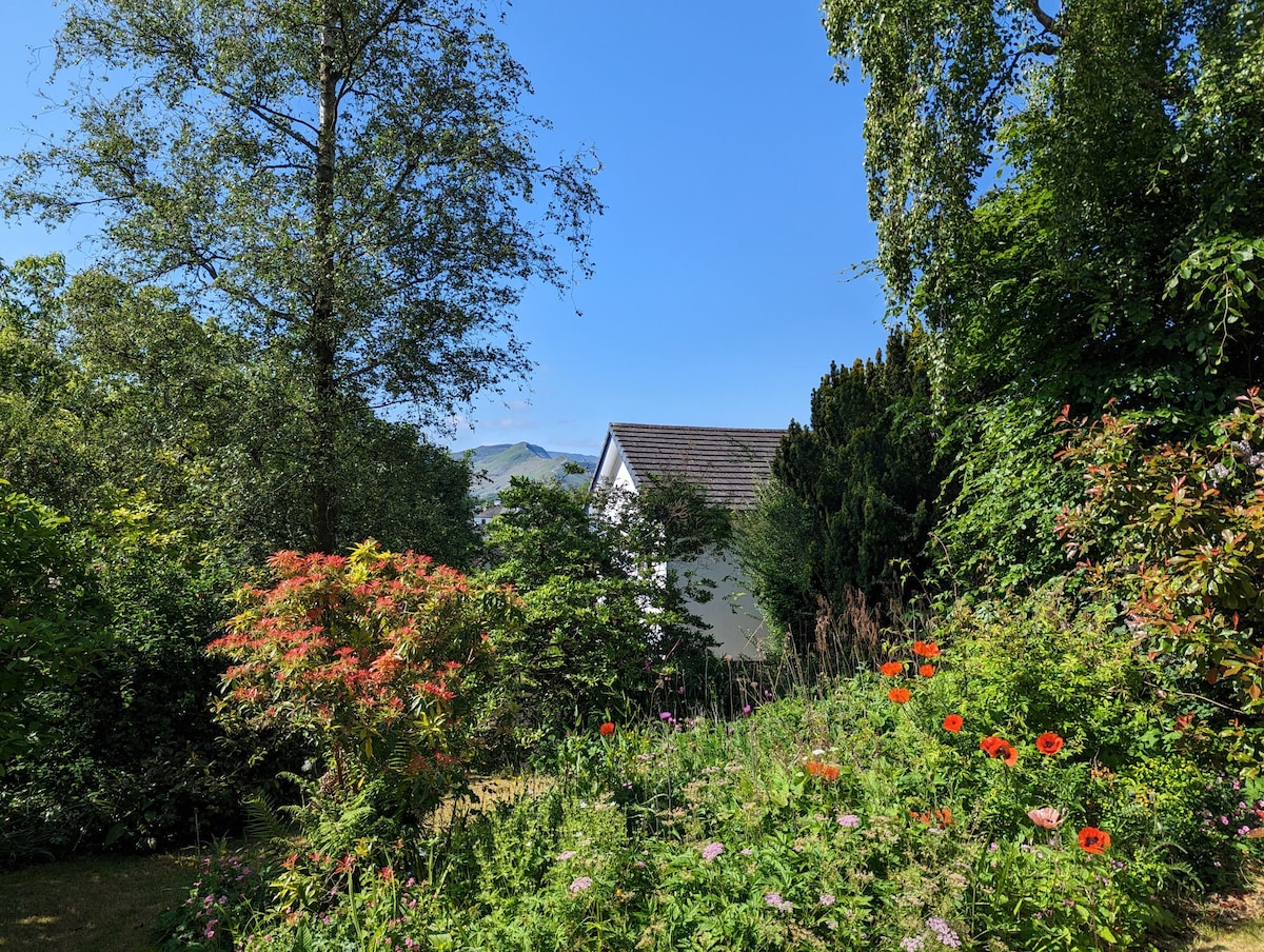 Bright and cheerful ensuite studio flat on the edge of the Lake District National Park. Great views of Helvellyn and High Street. Lake District hikes, cycling or sightseeing within a few minutes. There is a small well equipped kitchen with hob, fridge and microwave for preparing light meals. The local pub is a 10 minute walk and serves excellent food with other good food pubs just down the road. Guests are welcome to share use of our BBQ corner with fabulous view of the mountains.