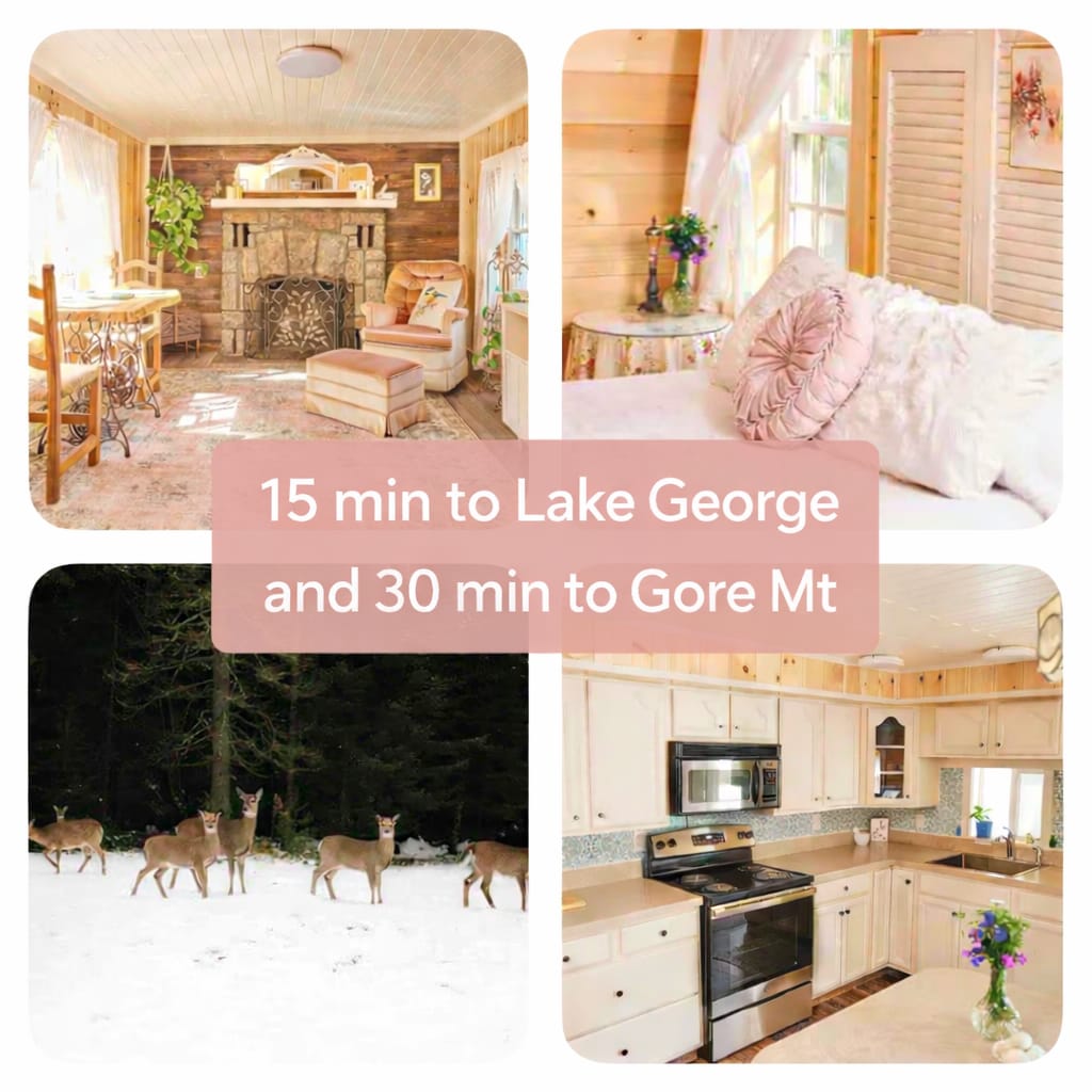 *Romantic getaway nestled in the Adirondack Mountains, just 15 minutes to Lake George *Vintage Record Player, Farm Fresh Eggs and pollinator gardens *A dreamy escape into nature where you will wake up and feel like you are still dreaming *This is not just any five star stay step outside we have millions our night sky is breathtaking *We strive for our guests to have nothing less than a five star experience, as you can see by our reviews Chickadee is decorated for Christmas Nov -New Year’s