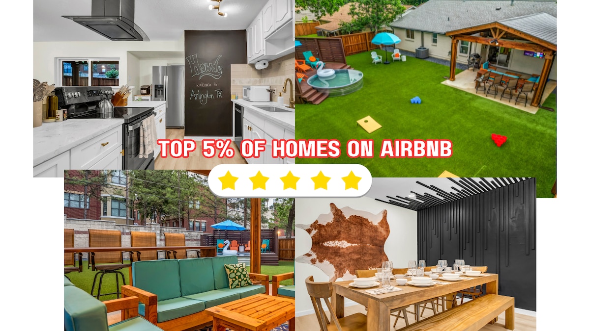 What you’ll ❤️ about your stay: - Centrally-located in the heart of Arlington - Within minutes of AT&T Stadium, Texas LIVE, Globe Life Field, Six Flags, Hurricane Harbor, University of Texas at Arlington, Billy Bob's of TX, Famous Stockyards of Fort Worth, & DFW Airport - 19 min walk to AT&T Stadium - Walking distance to shops, restaurants, & bars - Fire Pit/Grill/Outdoor Dining - Fully equipped Kitchen (pods/coffee provided) - High Speed Internet - (3) Smart TVs - Full-Size Washer & Dryer