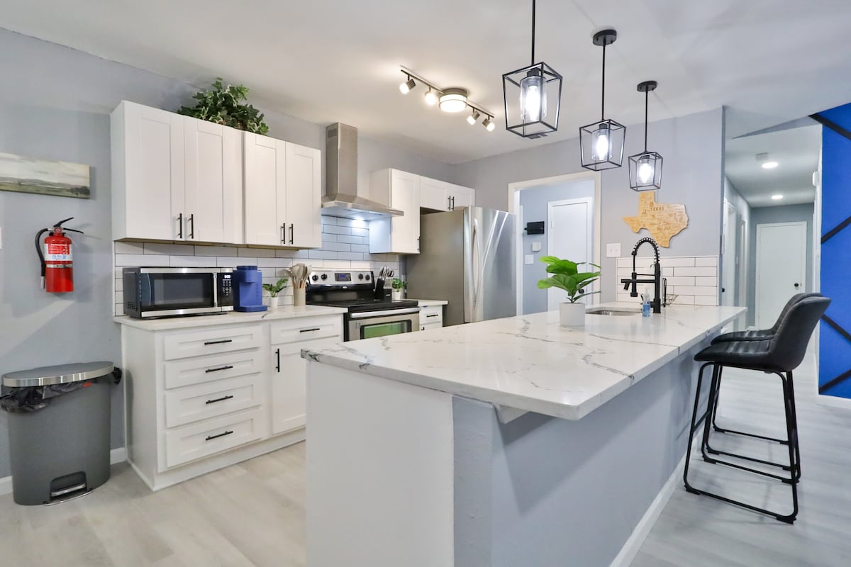 What you’ll ❤️ about your stay: - Centrally-located in the heart of Arlington - Within minutes of AT&T Stadium, Texas LIVE, Globe Life Field, Six Flags, Hurricane Harbor, University of Texas at Arlington, Billy Bob's of TX, Famous Stockyards of Fort Worth, & DFW Airport - 19 min walk to AT&T Stadium - Walking distance to shops, restaurants, & bars - Fire Pit/Grill/Outdoor Dining - Fully equipped Kitchen (pods/coffee provided) - High Speed Internet - (3) Smart TVs - Full-Size Washer & Dryer
