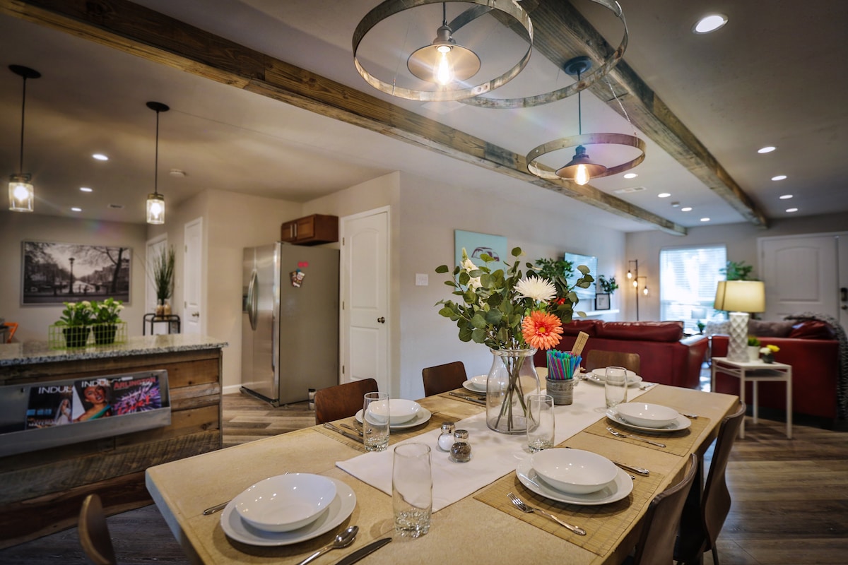 What you’ll ❤️ about your stay: - Centrally-located in the heart of Arlington - Within minutes of AT&T Stadium, Texas LIVE, Globe Life Field, Six Flags, Hurricane Harbor, University of Texas at Arlington, Billy Bob's of TX, Famous Stockyards of Fort Worth, & DFW Airport - 19 min walk to AT&T Stadium - Walking distance to shops, restaurants, & bars - Fire Pit/Grill/Outdoor Dining - Fully equipped Kitchen (pods/coffee provided) - High Speed Internet - (3) Smart TVs - Full-Size Washer & Dryer
