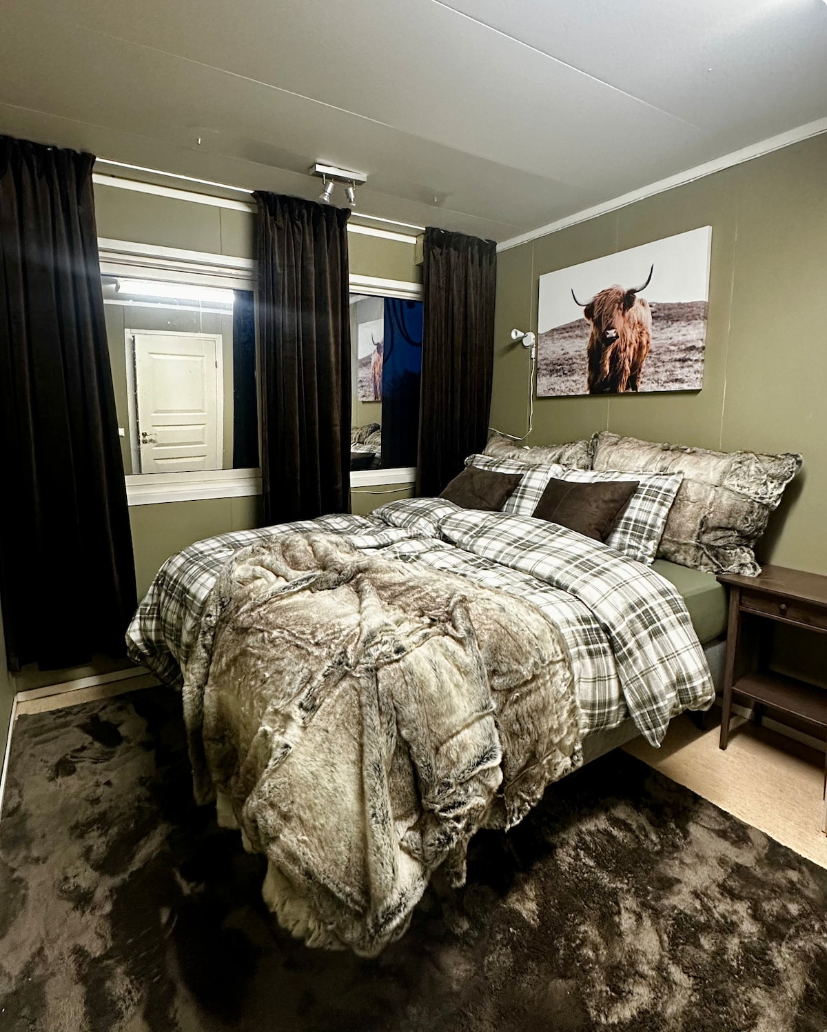 Tyvenhyttene er et signaturprosjekt fra oss og er en spesialdesignet hytte med unikt interiør. Vi har tatt med oss følelsen av å bo på et boutique hotell til den flotte naturen i Mjøsli. Hytta har privat terasse, 1 bad og 1 soverom + sovesofa i stue med tilsammen 4 sengeplasser. Delen med sovesofa dele med glassvegg som er flyttbar og lammeller for som gjør soveplassen privat. - Jacuzzi - WiFi - Elbillading tilgjengelig på fellesparkering - Privat