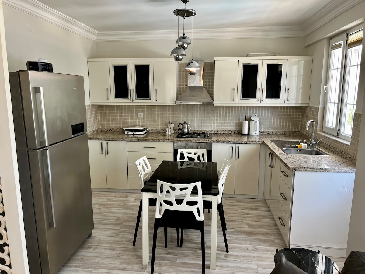 Enjoy a peaceful stay in our modern 2-bedroom apartment in central Side. The beach is just 800 m away, and restaurants, cafés, the seaside promenade, and Side Ancient City are all within a few minutes’ walk. Set on a quiet street, the home also features a relaxing garden with a BBQ, and it’s pet-friendly Highlights: • 800 m to the beach • Walk to restaurants & Side Ancient City • Free Parking • Pet-friendly • Garden with BBQ • Clean, modern 2BR comfort