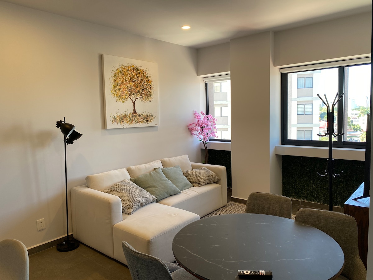 Enjoy your stay in this wonderful apartment, near EXPO GDL and the U.S. Consulate photo shoot (CAS). Relax with its amenities, including a heated pool, and work out in our fully equipped gym and on-site Terrace. Experience the 2026 FIFA World Cup in Guadalajara from a modern, comfortable loft perfectly located in the iconic Zona Americana/Chapultepec, the city's gastronomic and cultural heart. Don't miss this opportunity; you'll be amazed by your stay!