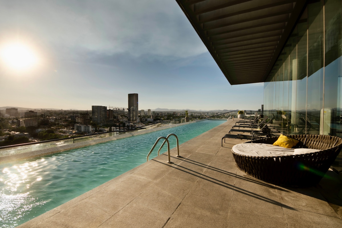 Estamos comprometidos en que tu estancia sea 100% placentera, cuidando cada detalle en limpieza y servicio. Al llegar disfruta la hermosa vista desde el balcón con una botella de vino de cortesía. Ubicado en la mejor zona de Guadalajara, a solo 5 minutos caminando del Corredor Chapultepec, nombrado por Time Out como el vecindario más cool del mundo, rodeado de excelentes restaurantes y vida nocturna. Lo suficientemente cerca para disfrutarlo y lo suficientemente lejos para descansar sin ruido.
