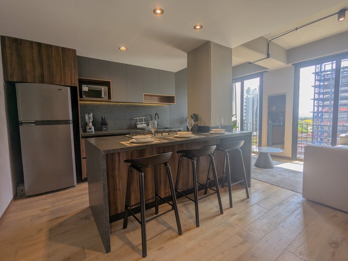 Lujoso departamento en Guadalajara, decorado por el despacho FNisino y con muebles fabricados a la medida por manos tapatías. Hospédate en uno de los edificios más exclusivos y nuevos de Providencia, cerca de la zona financiera, el Bosque Colomos, Punto Sao Paulo y solo a 10 minutos de Andares. Espacio excepcionalmente cómodo, que cuenta con todos los servicios y que te hará pasar una increíble estancia. Cuenta con seguridad 24/7, alberca, gimnasio, coworking y estacionamiento propio.