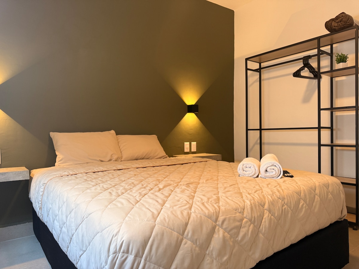Disfruta de un espacio armonioso y funcional, ideal para familias que buscan comodidad en una de las zonas más vibrantes de Guadalajara. Equipada con una cama King Size ultra cómoda y una litera con dos camas individuales, esta habitación ofrece amenidades pensadas en tu confort: aire acondicionado, TV, WiFi, caja de seguridad y baño completo con regadera. Vive una experiencia única en la zona de fiesta y cultura de Chapultepec. Descubre los tesoros locales desde este moderno alojamiento.