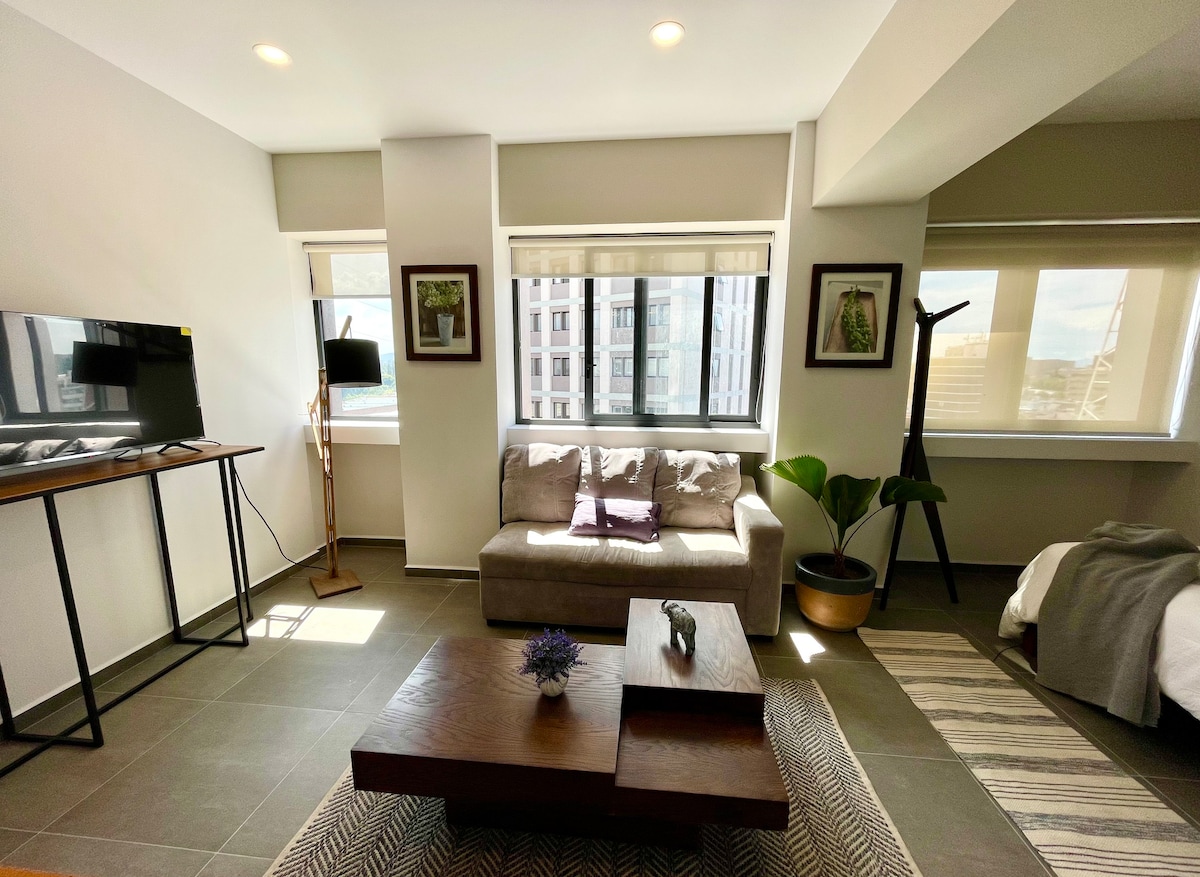 Estamos comprometidos en que tu estancia sea 100% placentera, cuidando cada detalle en limpieza y servicio. Al llegar disfruta la hermosa vista desde el balcón con una botella de vino de cortesía. Ubicado en la mejor zona de Guadalajara, a solo 5 minutos caminando del Corredor Chapultepec, nombrado por Time Out como el vecindario más cool del mundo, rodeado de excelentes restaurantes y vida nocturna. Lo suficientemente cerca para disfrutarlo y lo suficientemente lejos para descansar sin ruido.
