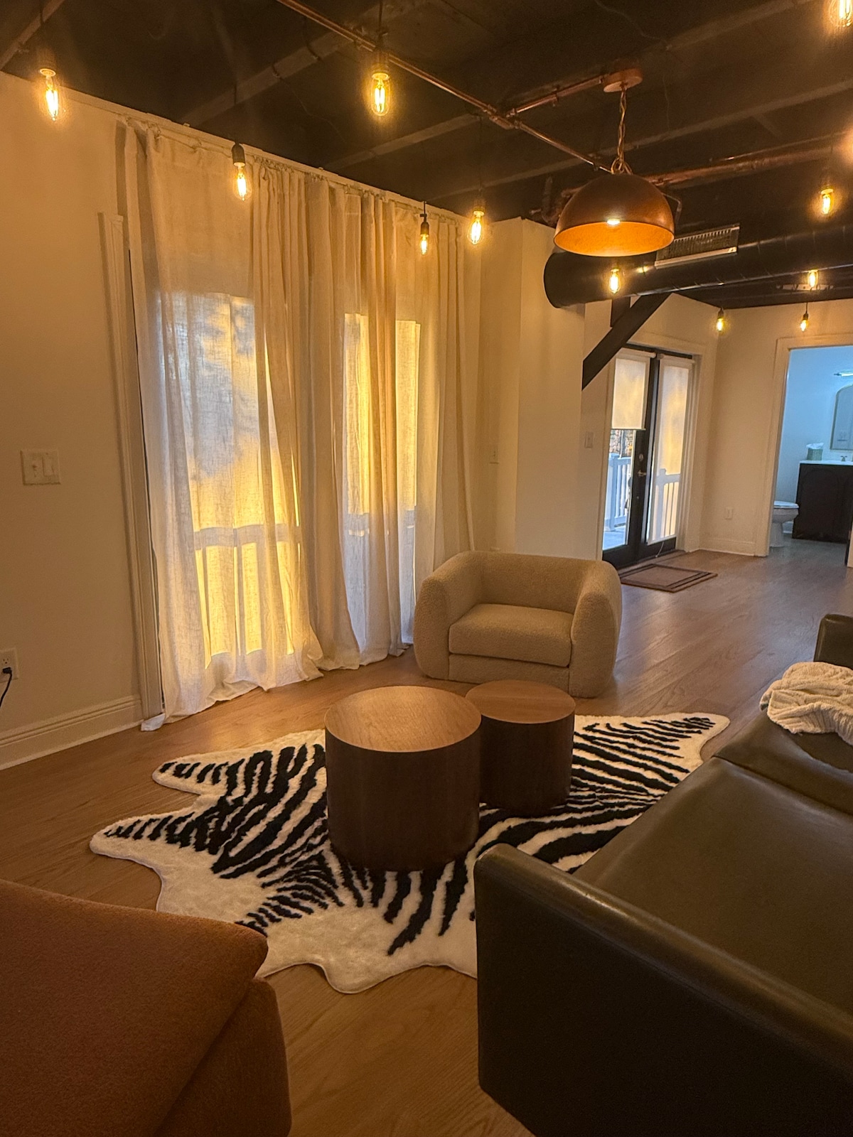 “hookah spot” has a built in hookah lounge on the second floor equipped with LED light, TV, Bluetooth speaker, hookah’s, flavors, and tips to service 4-6 people. A safari themed bedroom, as well as a romantic bedroom. There is a dining area with extra seating and full kitchen with cooking and eating utensils. The house has front porch, back porch and yard with seating and swing chairs. Beds: 1 queen, 3 twins , 1 full, 3 futtons Ring camera on porch for saftey authorized guest only