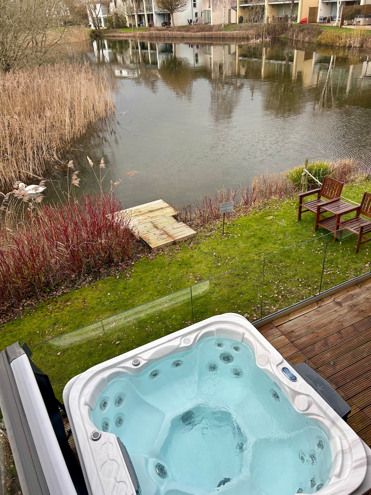 位于科茨沃尔德(Cotswold)的美丽湖滨房源,配备热水浴缸。