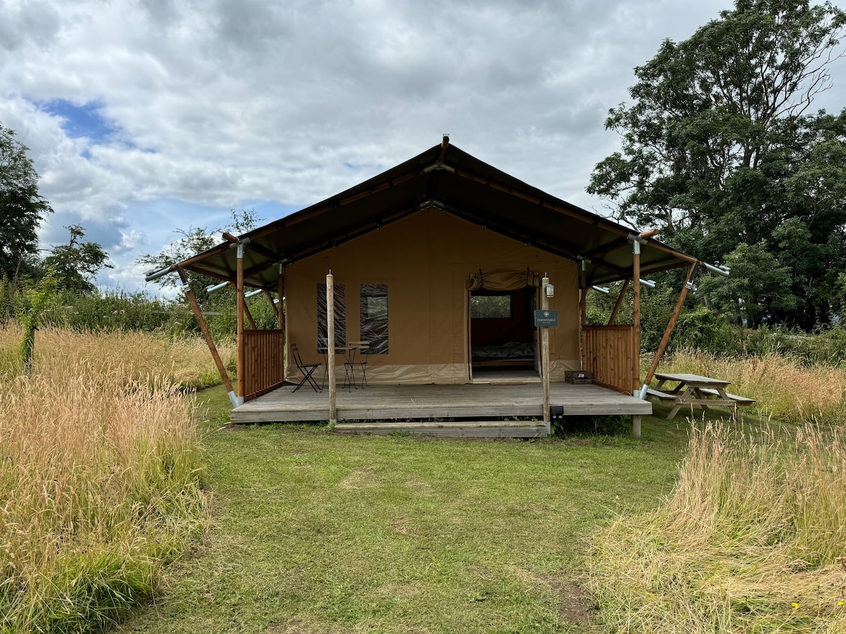 On our small family run campsite on an organic cattle farm, this luxury safari tent offers a true hassle free glampiny experience. This one of a kind tent is uniquely styled, spacious and comfortable. It will sleep up to 4 guests. With its kitchenette and arm chairs infront the log burner it makes a great base to unwind in the countryside regardless of whether you are hiking along the beautiful Severn way or just to the community owned village pub 5 minutes away.