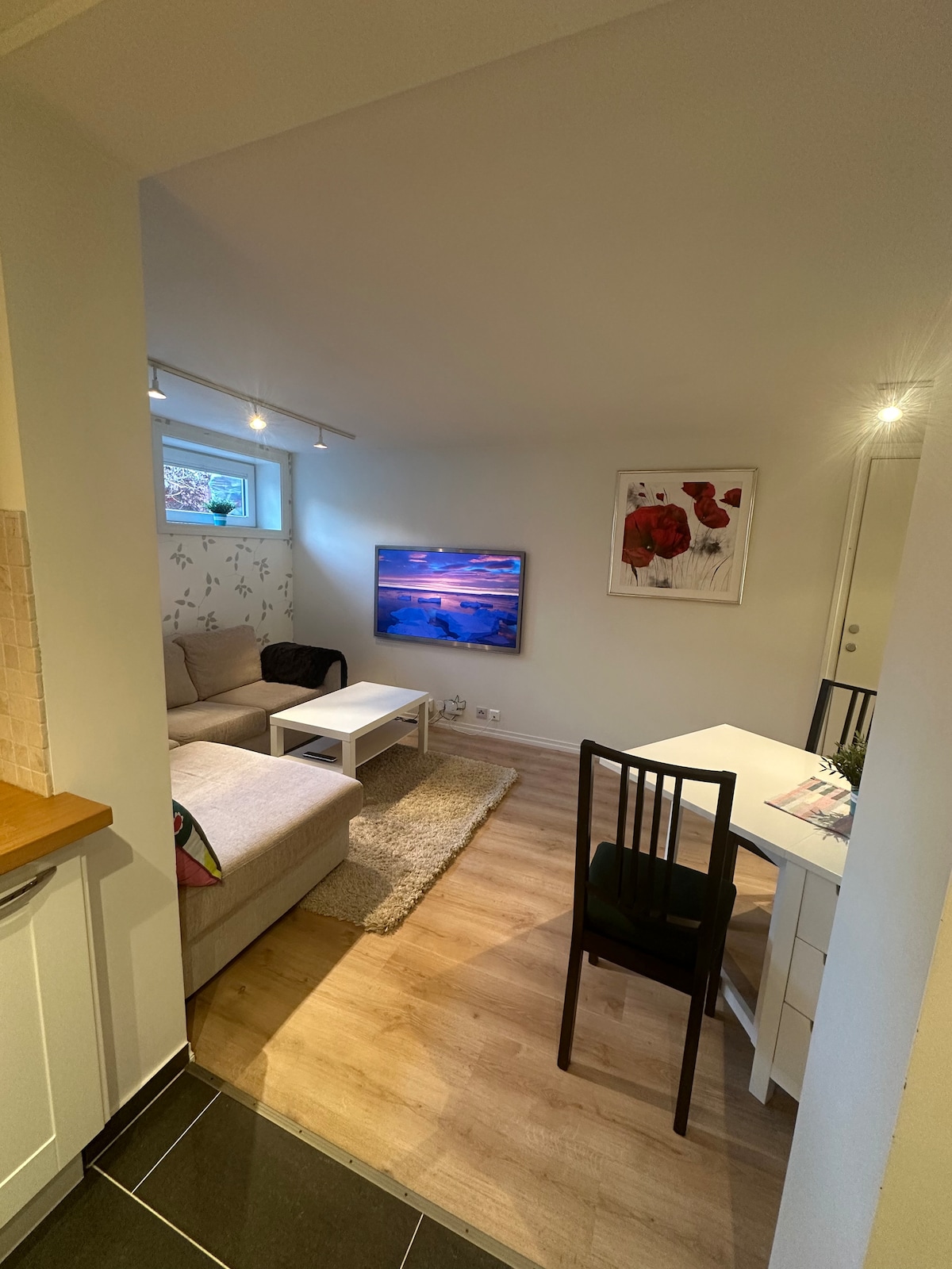 A large and comfortable apartment close to center of Kristiansand. The apartment has kitchen, two bedrooms and a bathroom; suits a family and longer stays.. It has two balconies and garden accessible from main bedroom and living room. The kitchen is modern Scandinavian design with dining facilities for six persons and has a chair for small children. Grand living room. Bathroom accessible from the hall and one of the two bedrooms. Wi-Fi. Parking for four cars and charging of EV is possible