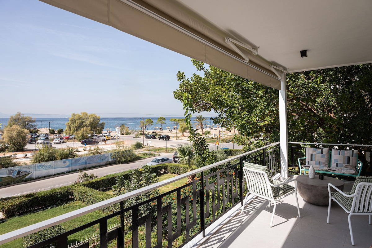 Stylish and Modern 55 m² Apartment with Stunning Sea Views from a 20 m² balcony Your perfect getaway on the 6th floor of a secure building, offering breathtaking views of the Aegean Sea–the same view as the luxurious ONE and ONLY resort across the street and ARC beach bar Relax and sunbathe The World renowned Astir Beach in Vouliagmeni just 5 min drive. Quiet, a big private garden, fast Wi-Fi, free street parking space in front of the building Shopping/Dining/Nightlife 3 mins away