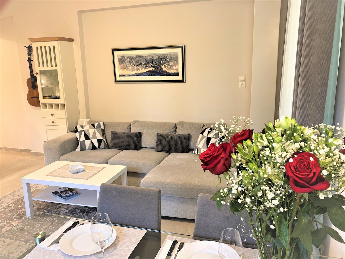 A 64m2 ground apartment (rennovated on April 2023) with a gorgeous backyard .It is located near a couple of bakeries , restaurants, pharmacy and a playground to enjoy playful moments with you children. It is 15 minutes by foot from a variety of beaches and about 10 minutes away from Glyfada center