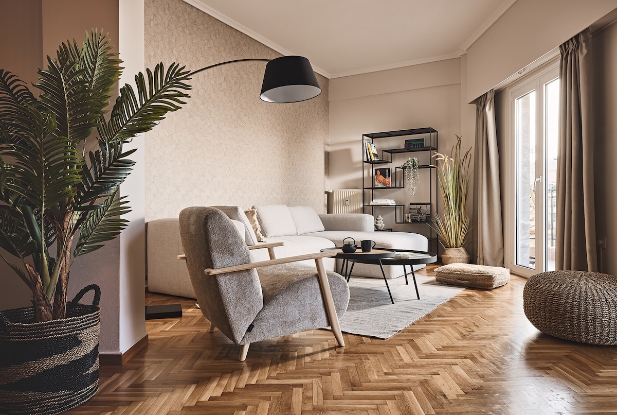 Kick back and relax in this calm, stylish space. Perfect for couples or couples with a child (baby crib/playpen and bath available). Sofa opens into an extra bed. The Queen Murphy bed can be left open or closed on the wall, to make a large living room. Located on the cusp with Glyfada, it's a 7-min walk to the famous Fashion District and only a 4-min walk to the Tram which runs to Piraeus, Acropolis, Syntagma, Airport. Walk to many beaches, restaurants, supermarkets, movies. Welcome & Enjoy!