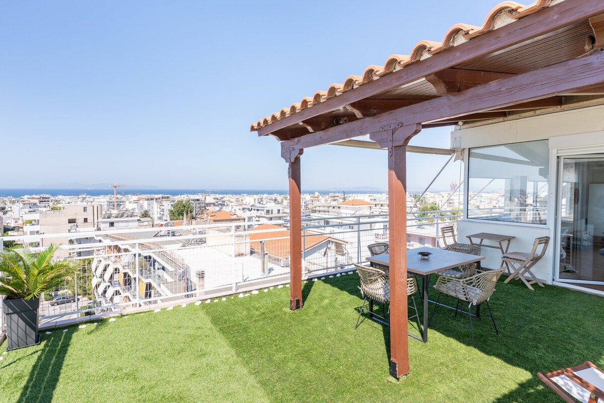 Stylish and Modern 55 m² Apartment with Stunning Sea Views from a 20 m² balcony Your perfect getaway on the 6th floor of a secure building, offering breathtaking views of the Aegean Sea–the same view as the luxurious ONE and ONLY resort across the street and ARC beach bar Relax and sunbathe The World renowned Astir Beach in Vouliagmeni just 5 min drive. Quiet, a big private garden, fast Wi-Fi, free street parking space in front of the building Shopping/Dining/Nightlife 3 mins away