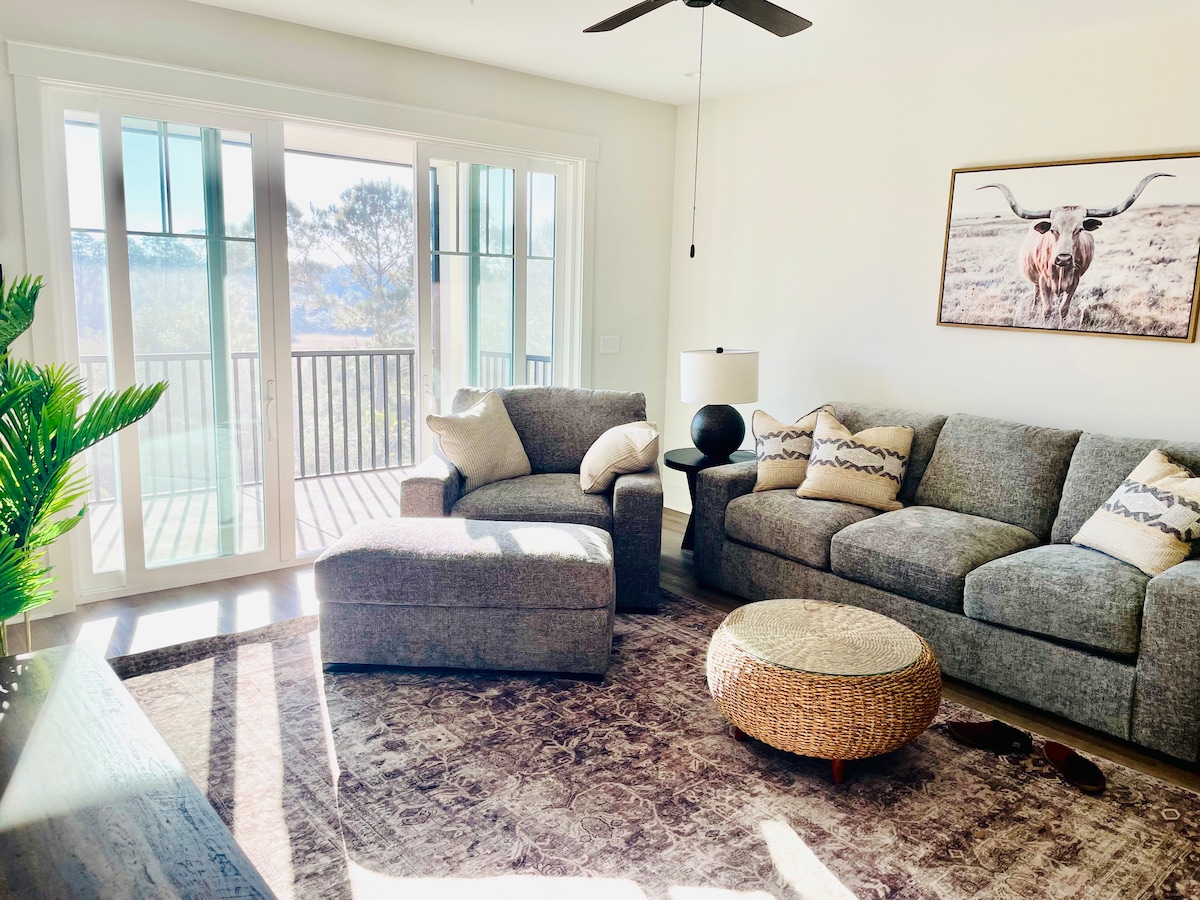 Take a break and unwind at this peaceful oasis. Whether you are coming to retreat or enjoy the Island with friends, this condo is perfect. Walk in and soak up the view of the lake and golf course, complete with a variety of birds and turtles to be observed. This spacious condo can sleep 4 guests with its king bed and very comfortable pull out couch queen bed. We have everything you'll need for cooking, cleaning and making yourself at home. The Moss Oak condo is ready! Come stay a while!