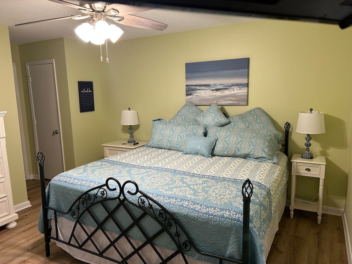 This Ground Floor Island Oasis Condo has been completely renovated from top to bottom with all new furniture and island themed decor including a king sized bed and sleeper sofa which accommodates comfortably up to 4 guests.The kitchen is well stocked with everything you need to cook at home as well as full sized washer and dryer. Beautifully appointed dining room seats 4 guests. Enjoy Free WifI with TV in the bedroom and living room. Relax & make plans for the day by the cozy fireplace.