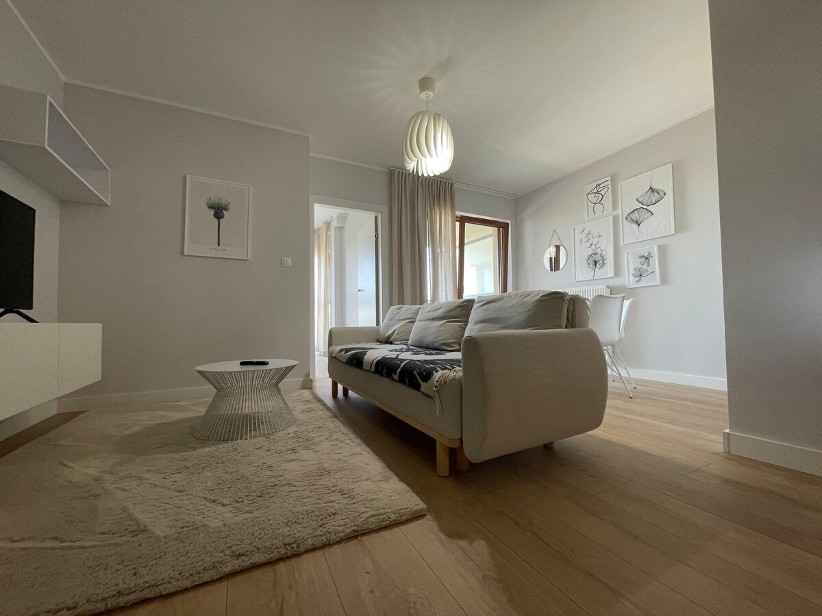The apartment consists of a room with a kitchen, bathroom and separate wardrobe. There is a bed for two people and a sofa bed. What’s more, the apartment has a large and sunny balcony. It is located on the first floor. The building was completed in 2017. All furniture and accessories are new since they were purchased specially for the quests. Apartment size is 31 square meters. The balcony is about 5 square meters. Within the 8-minute walk there is a Poznan tram stop.