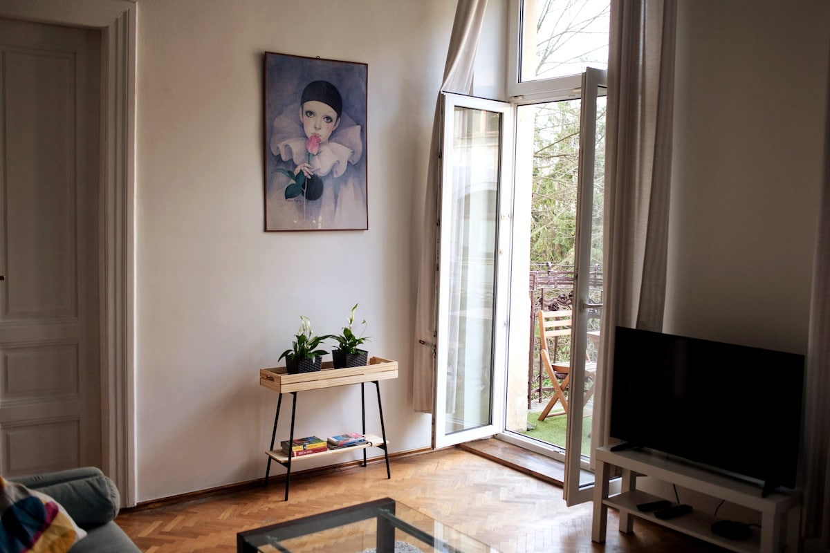 Beautiful apartment in the XIX century revitalized tenement house in the old city in Kraków, partly decorated with antique furniture. There is a bedroom with a double bed separated by a glass wall from the common part with sofa. Located on a quiet street, 5 min walk to the old town , 5 min walk to the Wawel Castle, 5 min to the Jewish part Kazimierz. 2 tram stops from the railway station. Apartment is fully equipped, comfortable and quiet. Around good local shops, plenty of places to eat out.