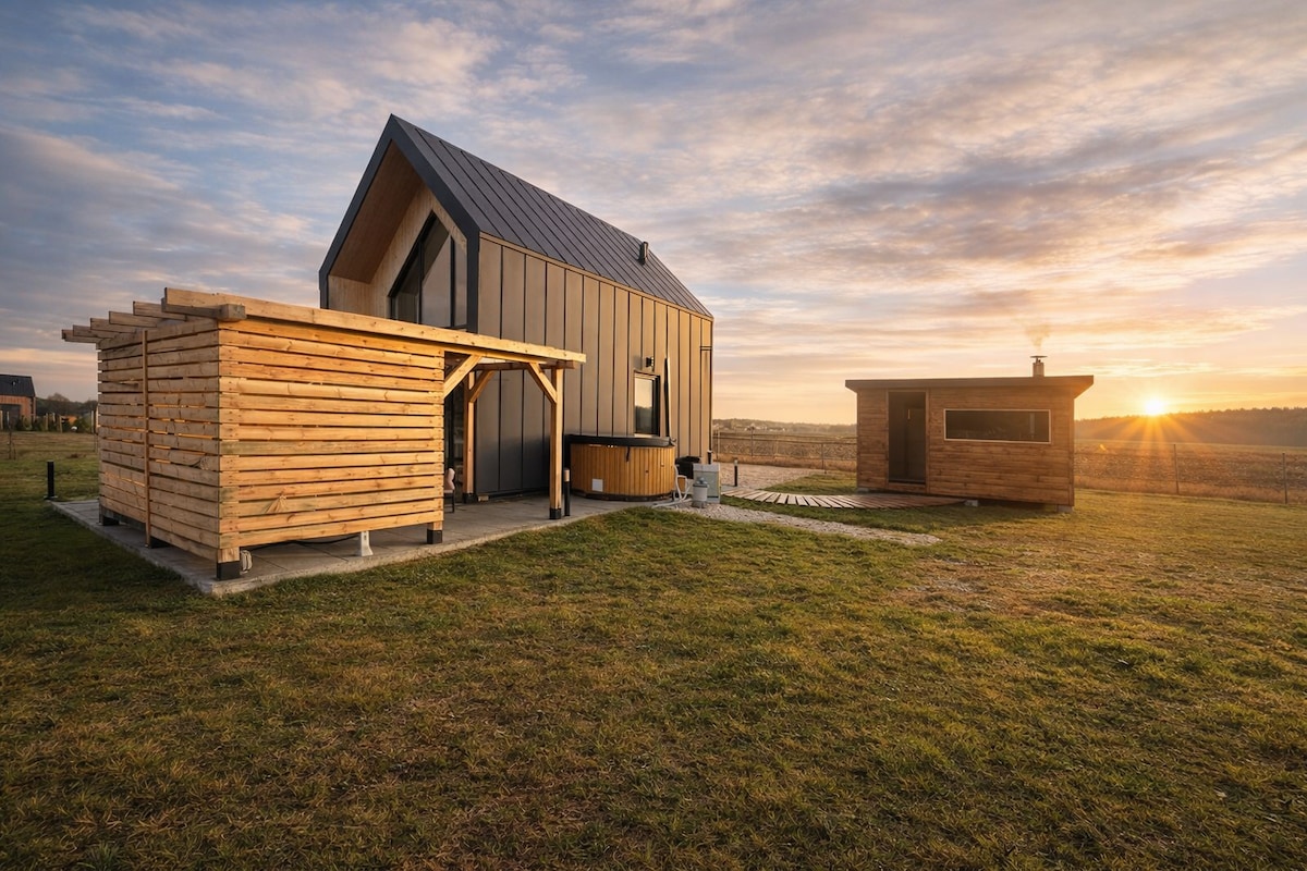 Miejsce na pobyt i odpoczynek dla rodziny ze starszymi dziećmi (z uwagi na schody i nagrzewającą się kozę, pobyt możliwy z dziećmi od 5 lat). Przepiękny domek wsród pól. Zapewnia niezapomniany kontakt z przyrodą. Domek choć mały posiada wszelkie wygody, uwzględniając klimatyzację. W niewielkiej odległości znajduje się Park Wodny Mamut. Miejsce idealne również do uprawiania sportów rowerowych- świetne trasy na szosę. Dla zmarzniętych jest sauna, a dla pragnących ochłody beczka na zimną wodę.