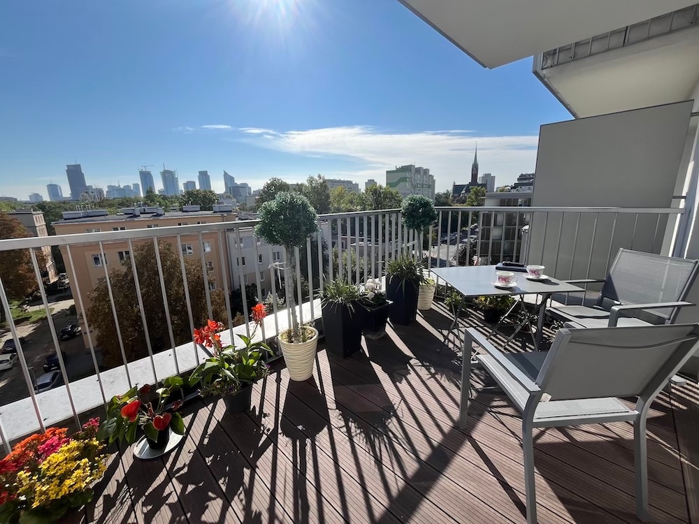 AmSuites - Discover a unique blend of luxury, comfort, and Scandinavian design in this stylish city apartment—perfect for a romantic escape, remote work, or a relaxing city break. ✨ Highlights: - 🧖♂️ Year-round heated Jacuzzi on a 55m² private rooftop terrace - 📺 55” Smart TV - ❄️ Air conditioning, high-speed Wi-Fi & full kitchen - 🚗 Free Secure garage parking included Soak under the stars, unwind in serene comfort, and make your Warsaw stay unforgettable.