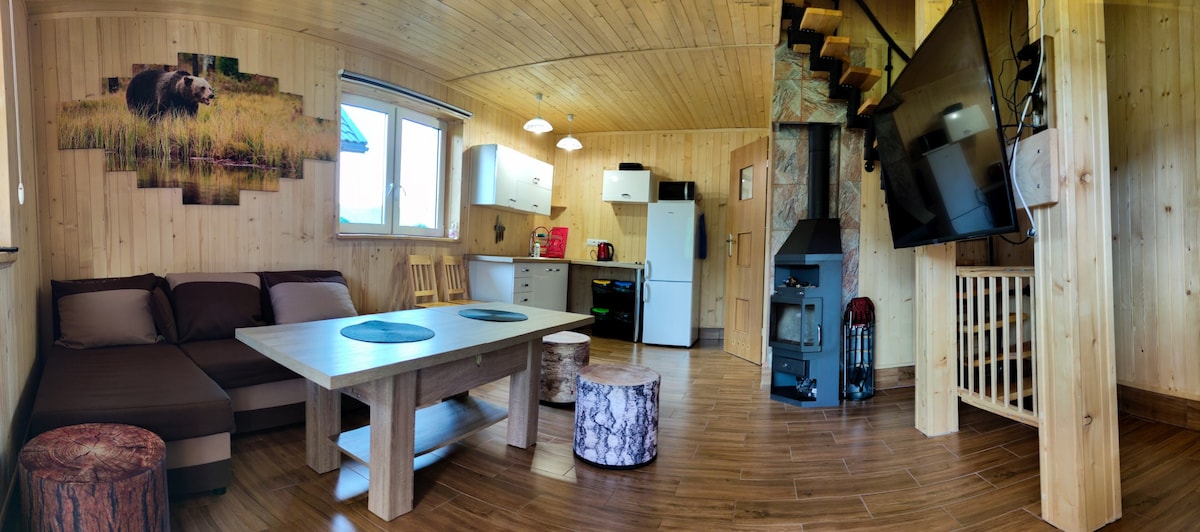 Zapraszamy do naszego przytulnego domku w sercu Bieszczad – idealnego miejsca na odpoczynek wśród natury. Do dyspozycji Gości: w pełni wyposażona kuchnia, Wi-Fi, parking, plac zabaw i grillowy zakątek. Latem czeka na Was ogólnodostępny basen odkryty, a dla miłośników relaksu – jacuzzi i sauna (usługi dodatkowo płatne). Po dniu na górskich szlakach odpocznij przy ognisku i poczuj prawdziwy klimat Bieszczad.