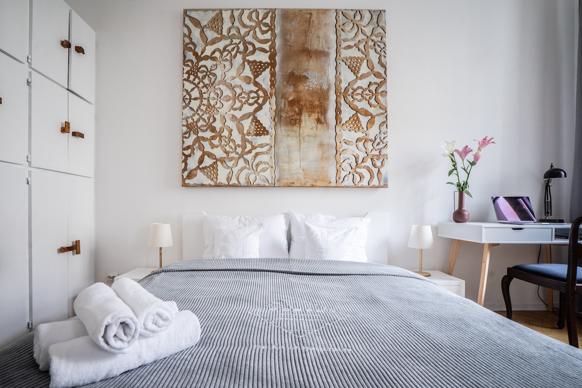 Perfekcyjnie usytuowane lokum w sercu Warszawy, otoczone zabytkami oraz atrakcjami turystycznymi. Kilka kroków od Starego Miasta i zielonych obszarów, takich jak ogród Krasińskich. To doskonała baza do zwiedzania, a jednocześnie spokojne miejsce z widokiem na wewnętrzny dziedziniec. Mieszkanie jest w pełni wyposażone, gwarantując wygodny pobyt. Świeża pościel i ręczniki w pakiecie. !Znajduje się na 3 kondygnacji (bez windy). 6 minut do Barbakanu, 12 minut do Zamku Królewskiego, 7 minut do metra