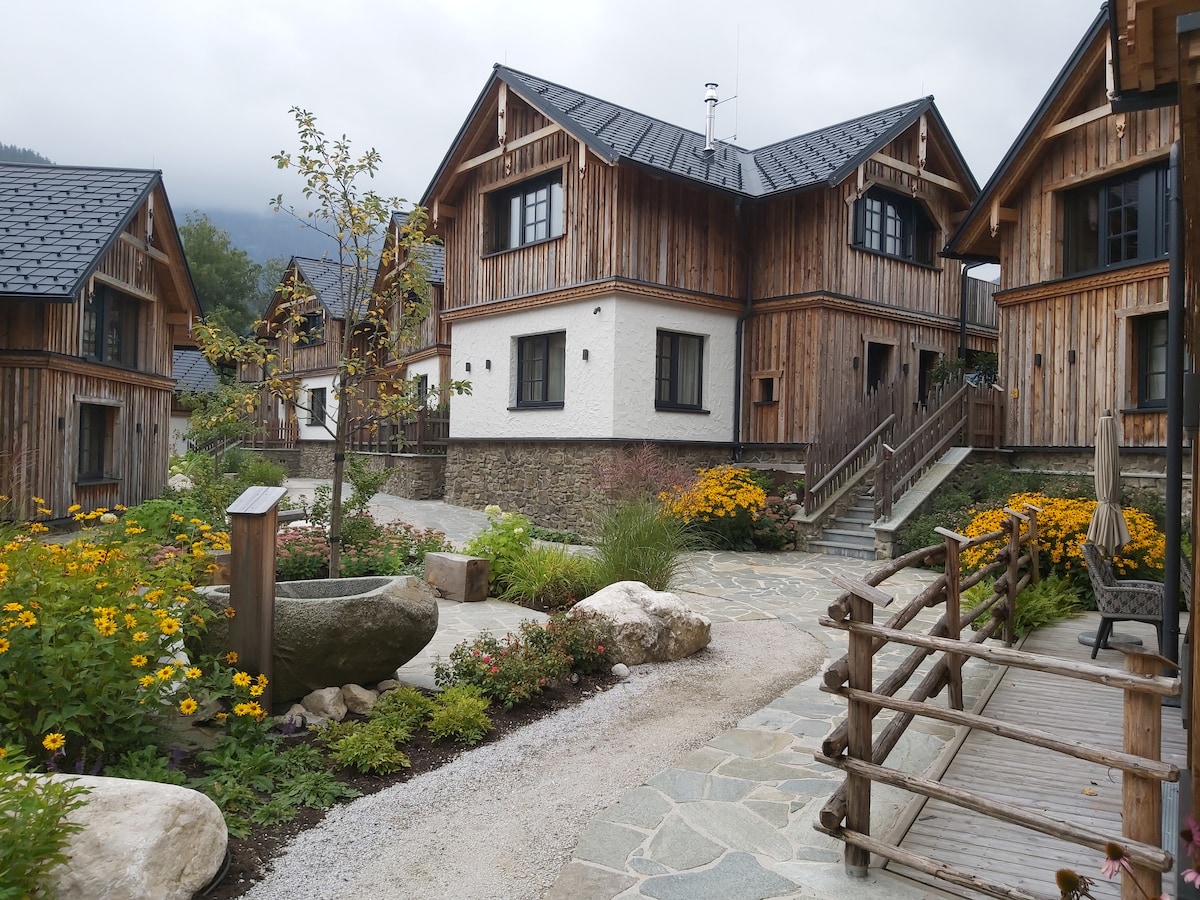 An architect chalet for four people completely made of wood with plenty of space for cozy get-togethers and privacy, lovingly furnished with an eye for the essential and the beautiful. Located in Thörl near Bad Mitterndorf in the Styrian Salzkammergut, surrounded by mountains and lakes in one of the most beautiful regions of Austria. Enjoy the special atmosphere of an ecological wooden house, the comfortable space and the great view of the imposing Grimming.