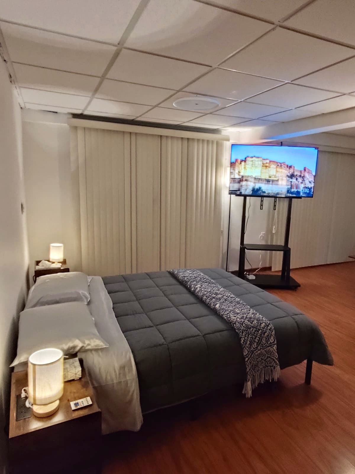 A solo 10 minutos caminando del AICM terminal 1, 40 m del Metro Terminal Aérea y junto al Fiesta Inn. Muy cerca del Palacio de los Deportes, Estadio GNP y Autódromo Hermanos Rodríguez, ideal para conciertos, vuelos tempranos y conexiones. Ubicado en primer piso, con capacidad para 4 personas: 1 cama matrimonial. Espacio cómodo y práctico para descansar antes o después del viaje. Factura disponible.