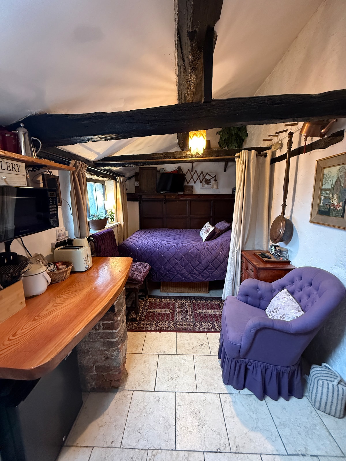 位于市中心的单间公寓,配有四柱床。