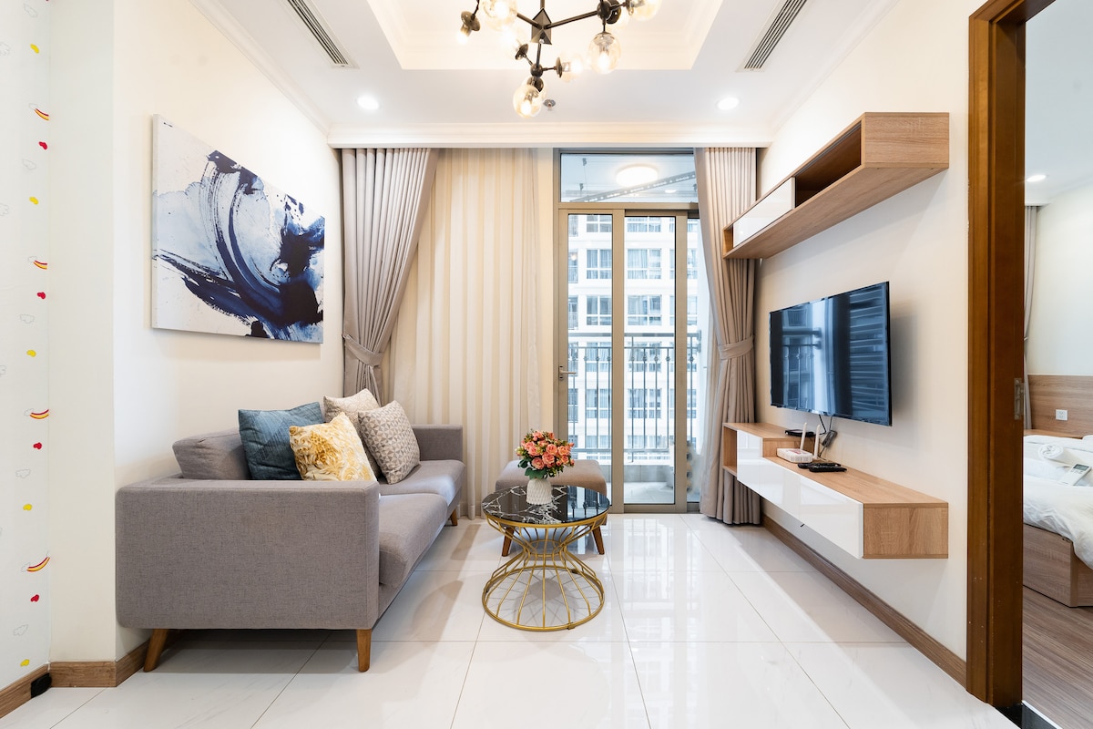 Modern luxury apartment, fully equipped. high-quality furniture, located on Masteri Block 2 Building's 15th floor- a well known high-class community for foreigners in Ho Chi Minh City. Just minutes away from shopping malls, bars, cafes & restaurants in Thao Dien. Has 2 bedrooms, 2 WC which fit a whole family, group of friends. Guests will enjoy free high speed wifi, Netflix, swimming pool & gym. Long-term lease and car rental available. 24/24 security staffs. Please contact us for details.