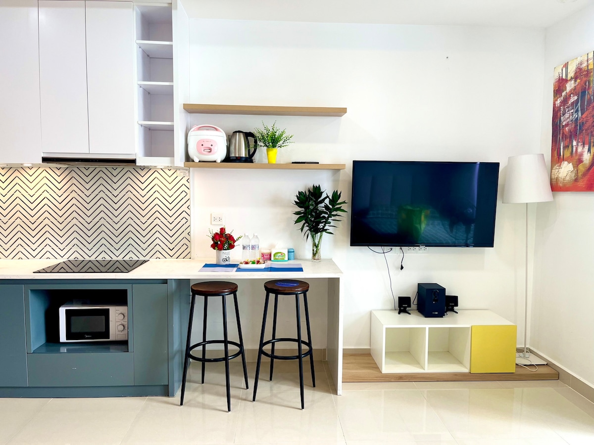 LOOK NO FURTHER – YOU’VE FOUND THE PERFECT PLACE FOR YOUR HOLIDAY!!! Living like Saigonese in the Oasis of the city, luxurious resident with Elevator ,Pool, Gym, playground, 24/7 security !! Fully furnished, designed and owned by interior design Easy access to City center (2 km) and Tan Son Nhat airport (800 m) 24/7 convenient store (Seven Eleven), Winmart, restaurant near the building. Cafe, shops, big parks, supermarket around. * Free cleaning once/ week for weekly stay * 24h support ^^