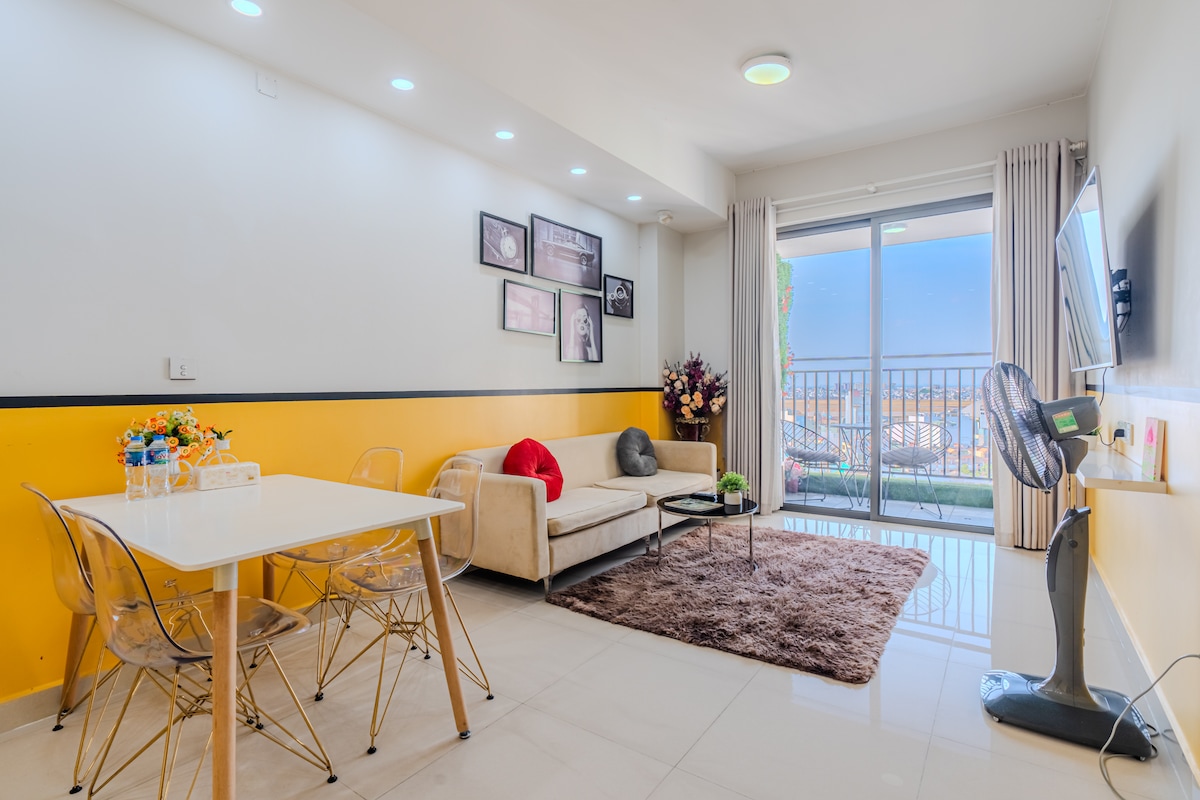 Welcome to TheA Home. The apartment is on the 13th floor, with a cool balcony with airport view - Location: Only 5 minutes to the international airport, 15 minutes to the center - Near by: Local restaurants & a big park, Phuc Long Coffee, Wayne Coffee, Highland Coffee, ATM and convenience stores (7 Eleven, winmart,...) within 5' walking - Private apartment entrance, nice gym, infinity swimming pool, BBQ area - Shop Cleaning and laundry services in the building.