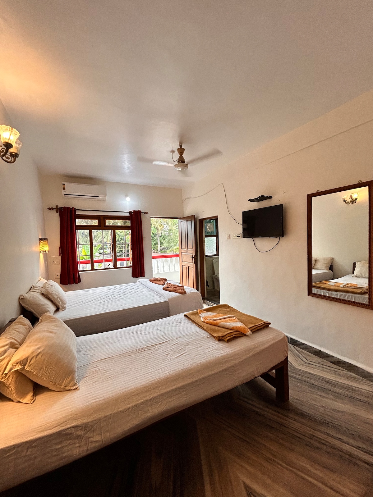 Discover tranquility at Happy Moon Homestay; your eco-friendly homestay in Goa's lush village. Away from crowded beaches for peaceful Goan countryside vibes; our location is our strength; ideal for recharging. Closest beaches: 25 mins drive; visit easily, return to quiet. Solar-powered with modern comforts; wake to birdsong. High-speed WiFi for remote work/digital detox. Not for beachfront fans; perfect for calm Goa escapes. Book this hidden paradise for authentic relaxation.