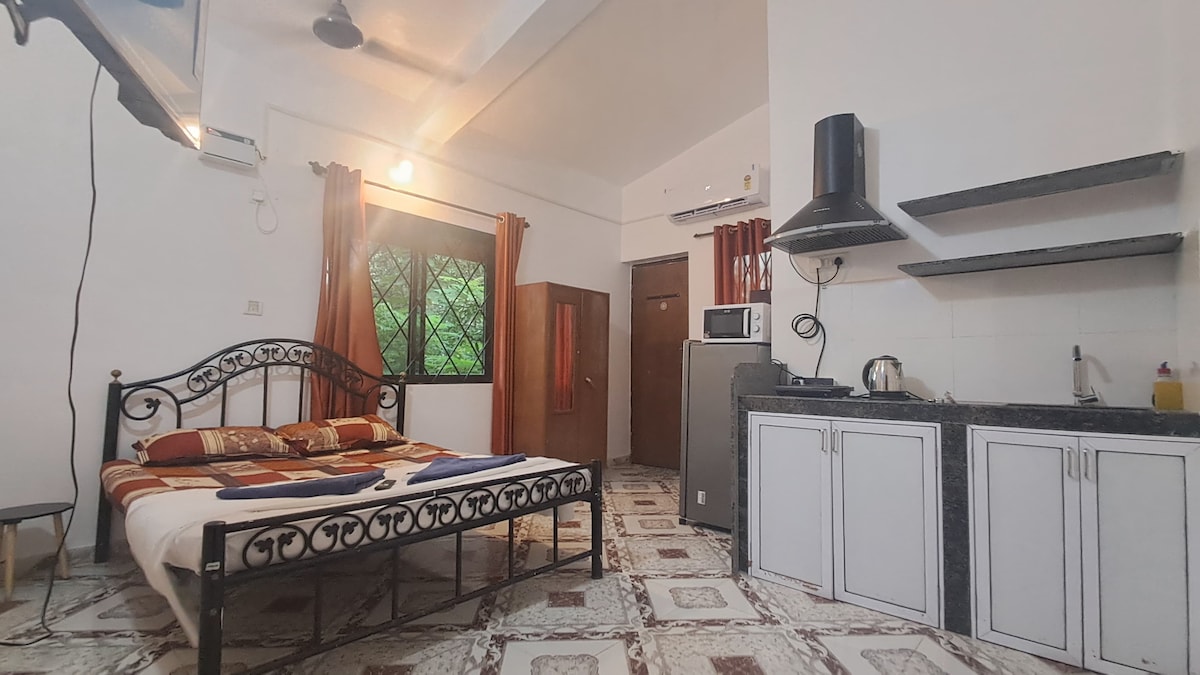 Modern Studio Apartment in the Heart of Patnem – Walk to the Beach! This self-contained premium studio apartment offers a spacious open-plan layout that combines the living room, bedroom, and kitchen into one cozy, well-appointed space. The apartment is fully furnished and thoughtfully designed to meet all your basic needs, whether you're here for a short getaway or an extended stay. Enjoy fast, high-speed Wi-Fi, perfect for remote work or staying connected while you travel.