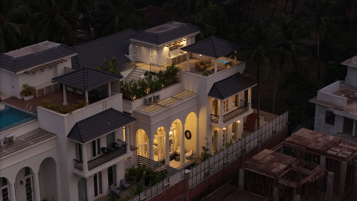 Casa Dos Reis in Vagator is a serene retreat where luxury and nature coexist in perfect harmony. Surrounded by lush orchards, the villa offers an intimate escape from everyday life. Interiors blend earthy textures with refined finishes, creating a warm, sophisticated ambience that invites relaxation and reflection. Guests can begin their day with a complimentary breakfast by the pool, enjoying peaceful orchard views.