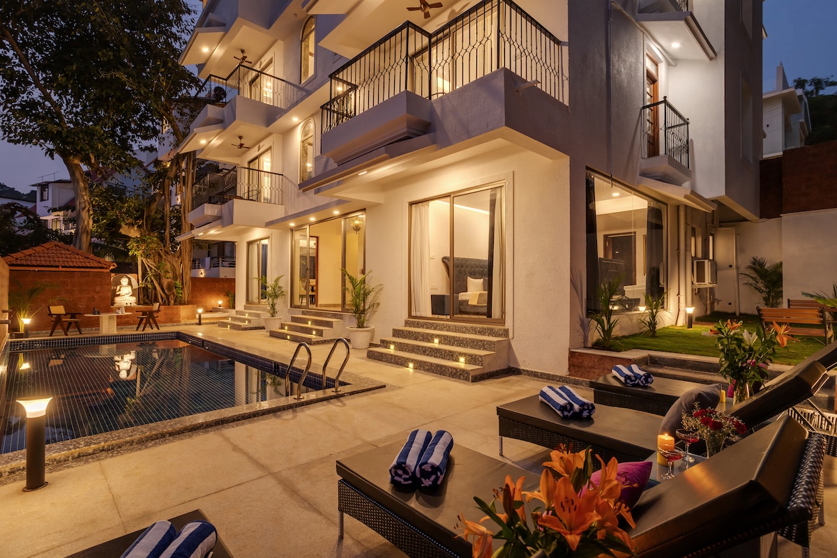 Kick back and relax in this calm, stylish villa. This unique and elegant space combines all the best that Goa has to offer, the combination of culture, entertainment, amazing sunsets; and top-end amenities like a hot tub, a swimming pool and power backup, to boost your getaway and your social media. This is a standalone villa located just 10 min from Candolim beach, within a gated complex. Well connected to highways, and not too far from shops, mall, restaurants, bars, and supermarkets.