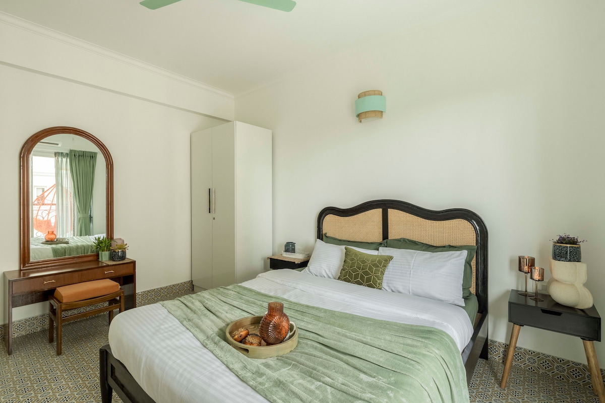 A beautiful boho vibe was front of my mind when creating this stunning cottage. Tucked away in a quite nook, overlooking an organic kitchen garden with the view of the fields, you will be trasported to a bygone era where things were just much slower. When spending time watching the birds & the bees, enjoying leisurely cups of tea, chatting on the balcony was part of the day. Surrounded by trees, you see another side of Goa. Yet you are literally 5 mins away from the party hub of Goa.