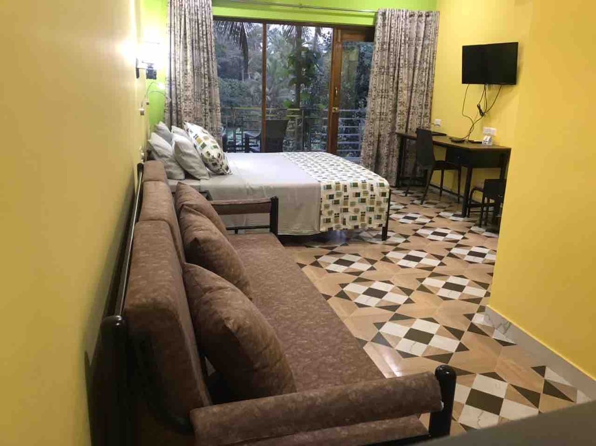 A quiet escape in a lovely Palolem neighborhood. Our studio offers a homey, sunlit stay with plenty of ventilation and peaceful leafy palm views. It's the perfect place to unwind, create, work or simply watch the vervet monkeys wander by. 🐒 We're just a 20-minute walk or a 5-minute drive to Palolem, Patnem, Talpona, Agonda & other popular beaches. Suitable for both solo travelers and families, (especially solo female travelers) with a private entrance and a calm, secure gated complex.