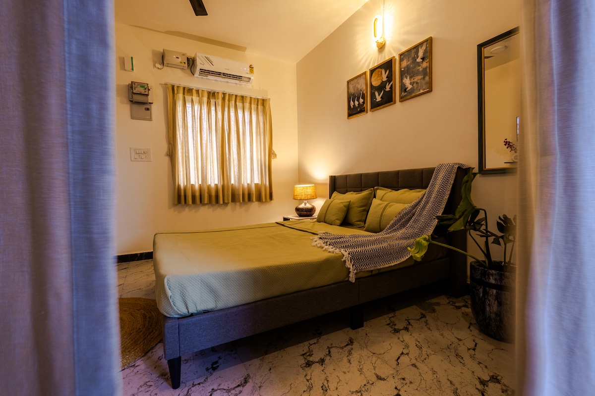 Discover a world of peace & inspiration at The Pause Project, a cozy romantic Airbnb nestled in the middle of a lush forest in Siolim, North Goa. Perfect for solo travelers, couples & families, it offers a space to slow down. Immerse yourself in books, music, travel memories & a lived-in ambience that feels like home. Cook a meal in the kitchenette or explore Siolim, known for its cafes & bars, with Anjuna, Vagator, Assagao & Morjim, Mandrem beaches 15-20 min away & 35 min from MOPA airport.