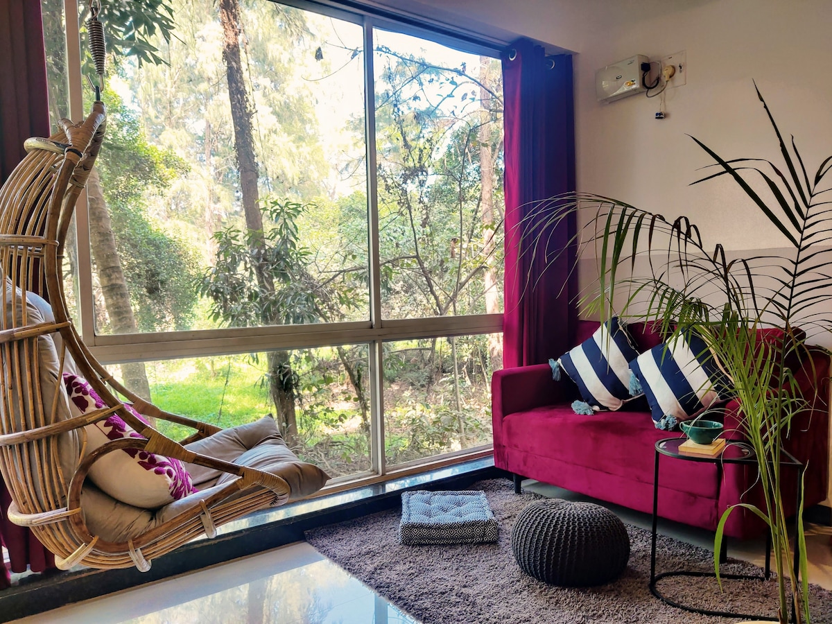 Stylish 1BHK Getaway. Sunset view & Pool. Curioso