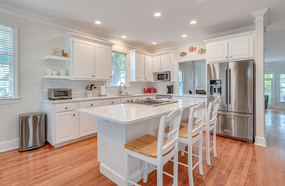 Experience Life in The Lowcountry! Our Coastal Cottage has luxury finishes, a gourmet kitchen, spacious bedrooms, and the new pool installed Spring of 2022 is ideal for discerning travelers of all ages. We pride ourselves on making sure your vacation time is special. Isle of Palms offers a premier beach vacation experience with pleasant beaches and delightful restaurants. We are a 5-minute walk to the beach on a quiet residential street away from the crowds.